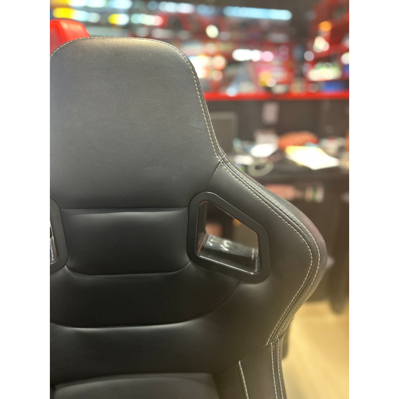 Chaise Gaming Bureau - Cuir noir coutures blanches